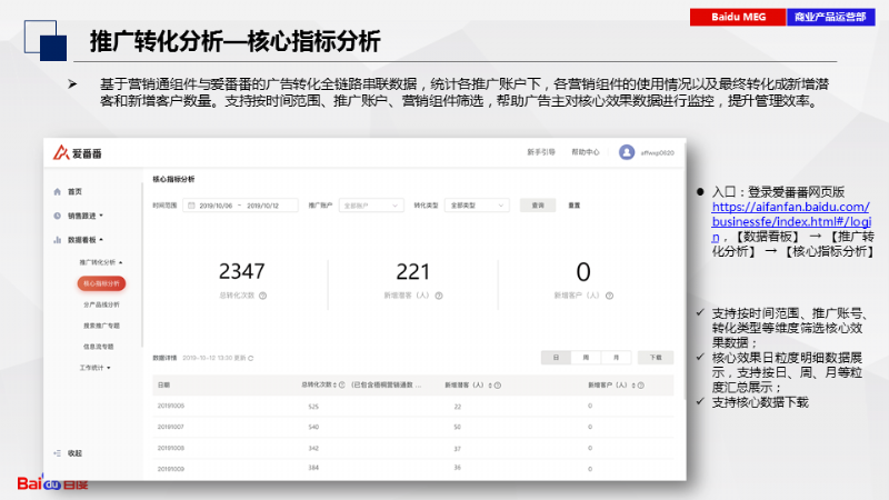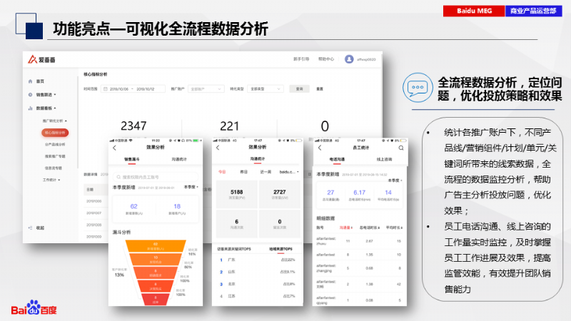通過趨勢圖可視化統(tǒng)計銷售呼入、接聽情況,幫助廣告主清晰分析銷售效能。全流程分析線索來源情況,銷售跟進線索情況,定位問題,優(yōu)化投放效果,確保業(yè)績達成,驅動業(yè)績增長。如何使用這么強大的功能,點擊查看文章詳情吧~